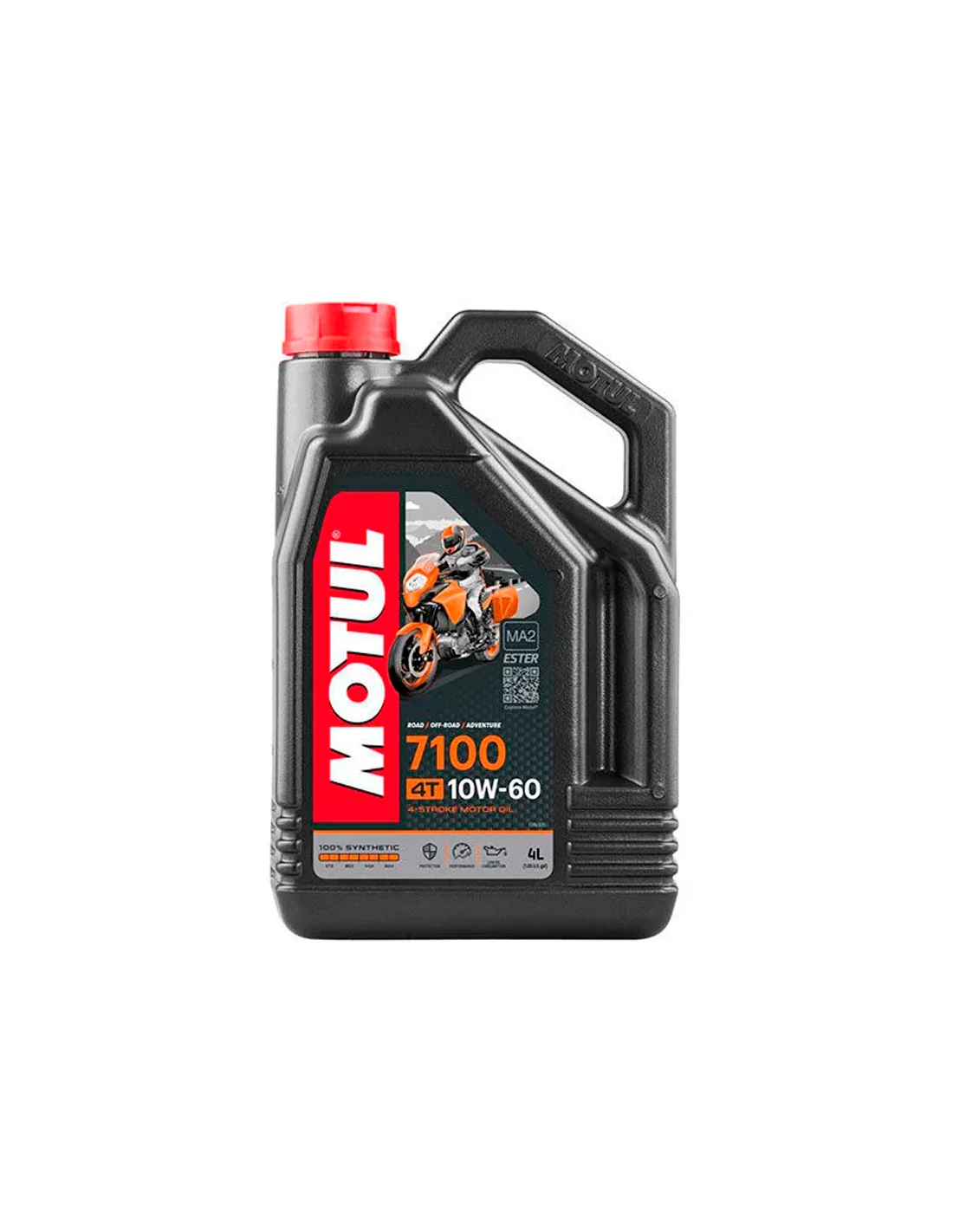 Aceite de Moto Motul 7100 de densidad 10W60 para motores de 4Tiempos producto envasado en envase de 4Litros con normativa JASO MA2 T903