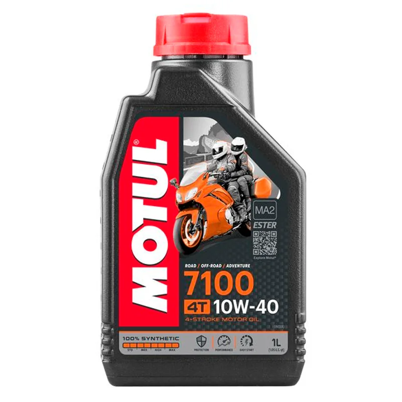 Aceite para motores 4 tiempos Motul 10W40 de 1 litro 100% sintetico. La gama de lubricantes 7100 de Motul ofrece las mejores prestaciones de un aceite 100% sintético con la garantía de calidad de una marca como Motul. La gama de lubricantes 7100 de Motul ofrece las mejores prestaciones de un aceite 100% sintético con la garantía de calidad de una marca como Motul.
