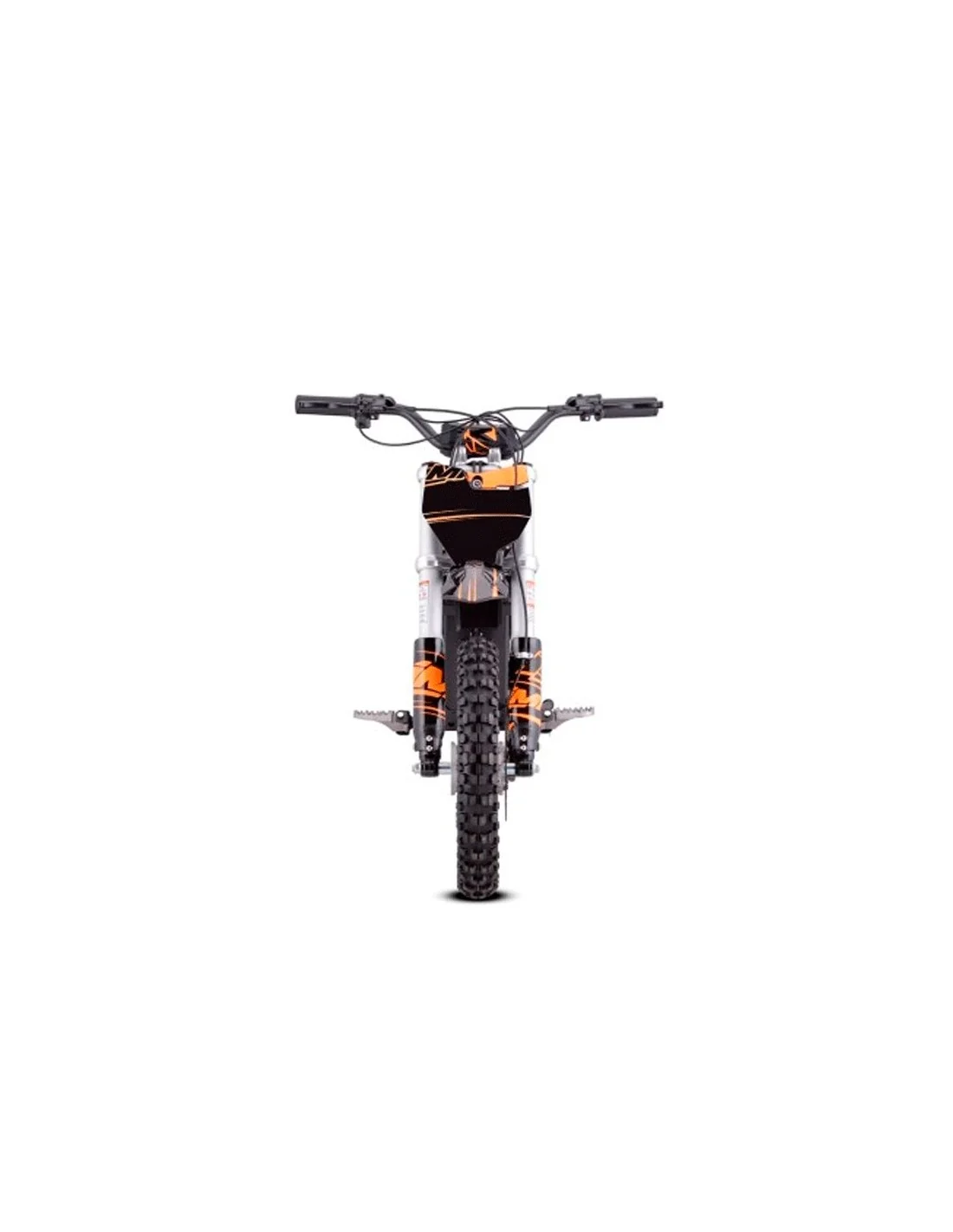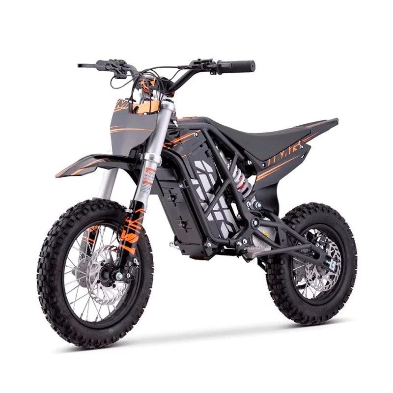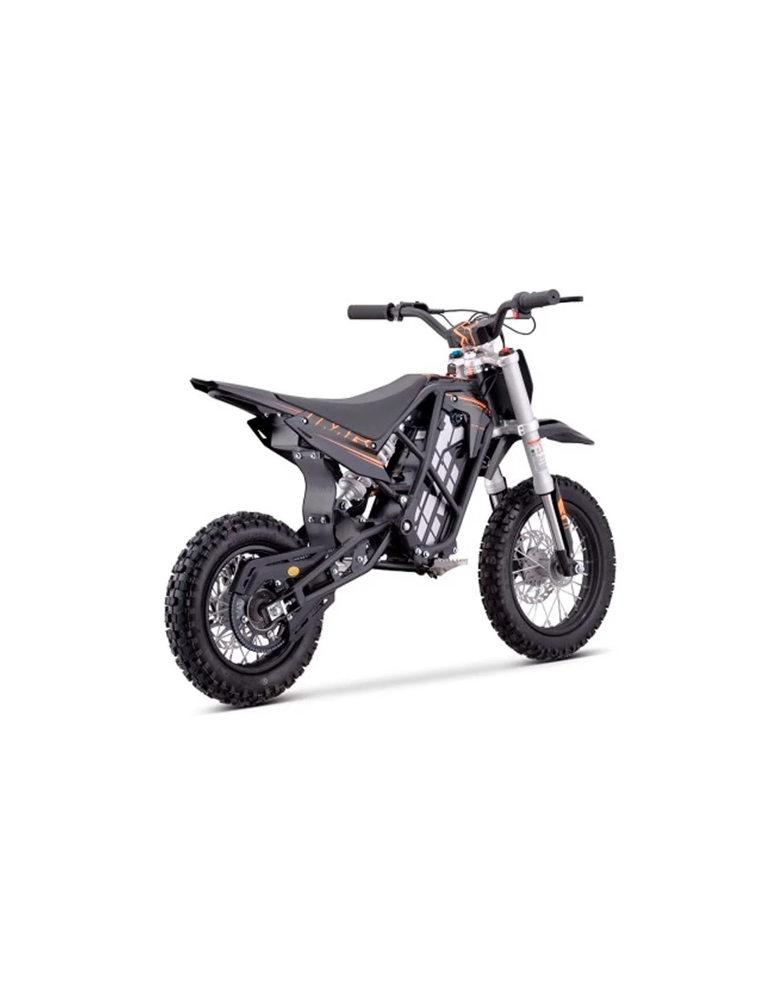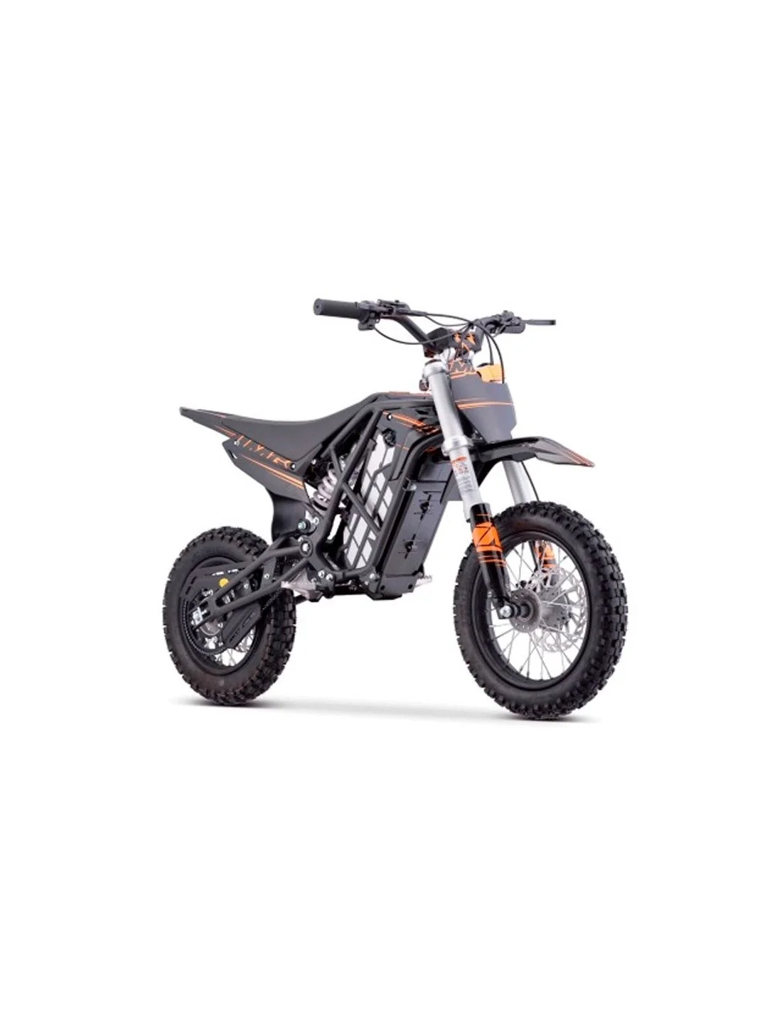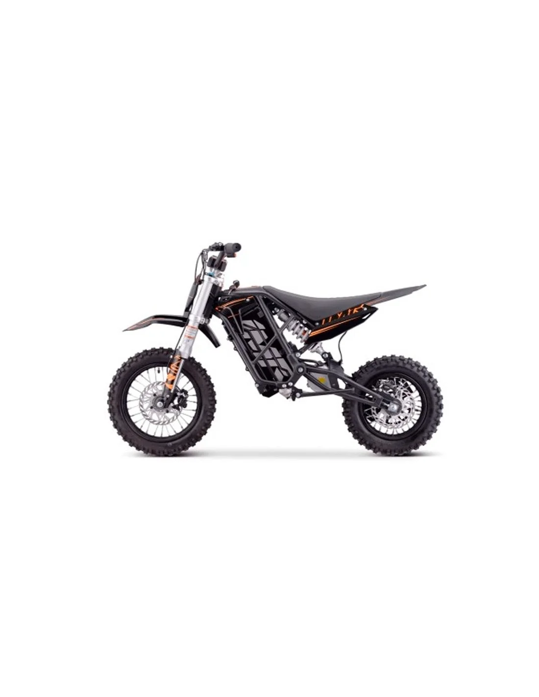 Nueva Mini Cross eléctrica IMR modelo E-SX (2025). Disfruta su motor de 1600w de potencia con bateria de litio de 48V. Autonomía de 2 horas y velocidad máxima de 40km/h. Suspensión delantera con horquilla invertida de 550mm y amortiguador trasero de 270mm. Freno delantero y trasero de accionamiento hidráulico. Tamaño de ruedas 12 y 10 pulgadas. Altura del asiento al suelo de 630mm. Tiempo de carga de la batería estimado entre 7 y 8 horas.