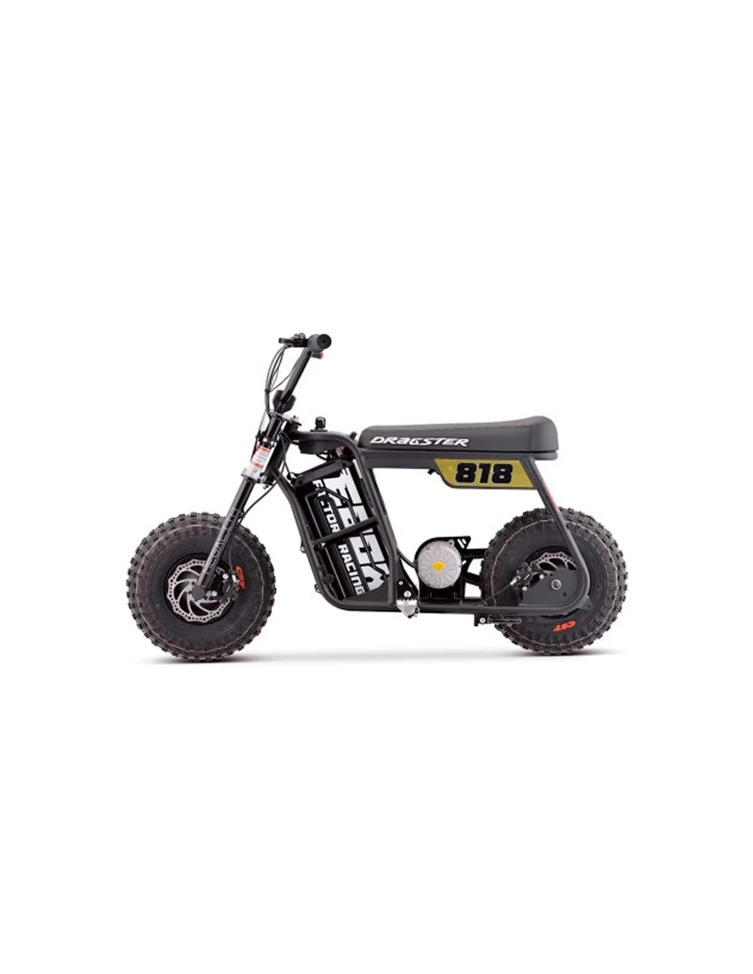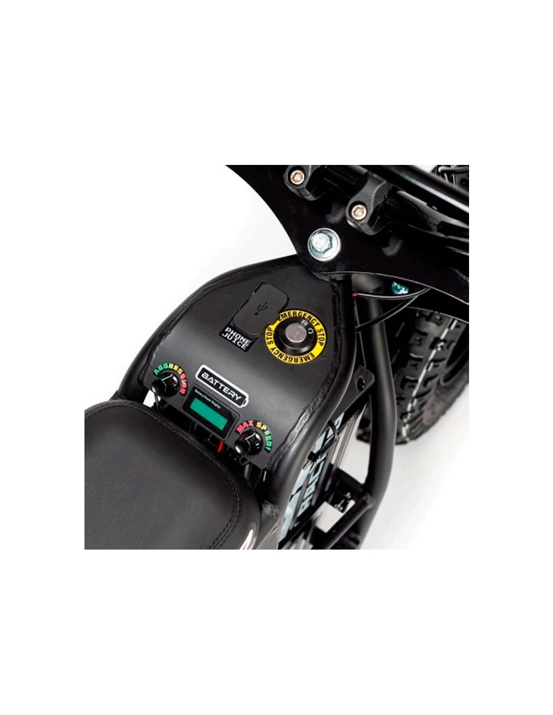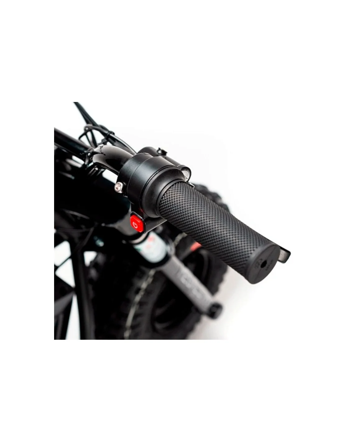Minicross IMR Dragster con motor de 2000W de potencia y batería de litio de 60V/18.2Ah, capaz de alcanzar una autonomía de 33 a 36 km por carga y una velocidad máxima de 53 km/h. Gracias a los ajustes externos de velocidad máxima y aceleración, podrás personalizar tu experiencia de conducción. Su tiempo de carga es de entre 5 y 6 horas con un cargador de 67.2V. Equipada con frenos hidráulicos y discos de 160mm, junto a una suspensión delantera rígida, garantiza seguridad y estabilidad. Con ruedas de 6 pulgadas y una altura de asiento de 585mm, soporta una carga máxima de 100kg. Edad mínima recomendada a partir de 8 años.