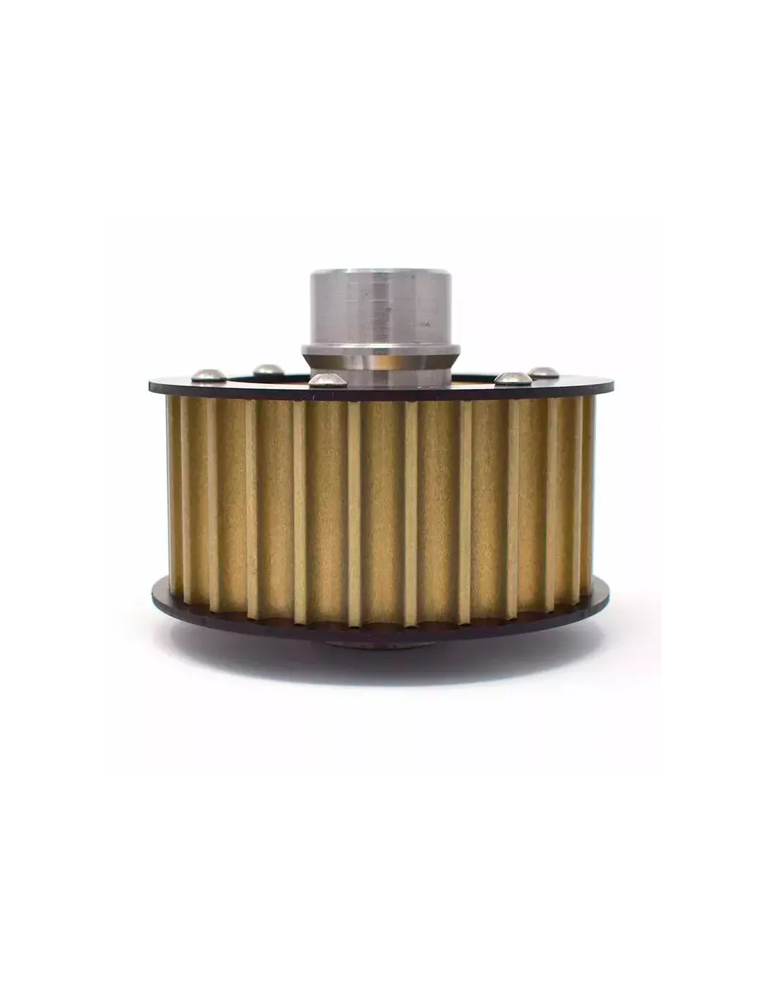 Los piñones Jetprime están hechos de ergal 7075 con oxidación dura de 25 micras. Esto le permite ser muy ligero y al mismo tiempo muy resistente al desgaste. Para el cubo central, por otro lado, se utilizó un acero aleado particular, deliberadamente no tratado térmicamente.
