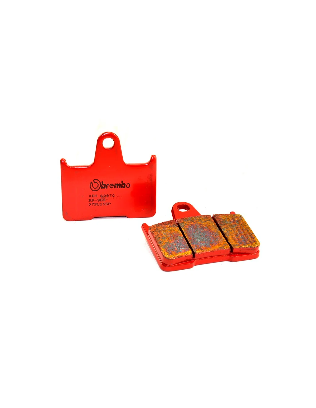 Pastillas freno Brembo 07SU25SP (trasera). La pastilla de freno Brembo 07SU25SP cuenta con el compuesto SP sinterizado, específico para el freno trasero. El compuesto SP sinterizado de Brembo se caracteriza por un coeficiente de fricción muy consistente tanto en caliente como en frío. Combina con un bajo desgaste, que garantiza una larga vida útil y un desgaste muy progresivo.