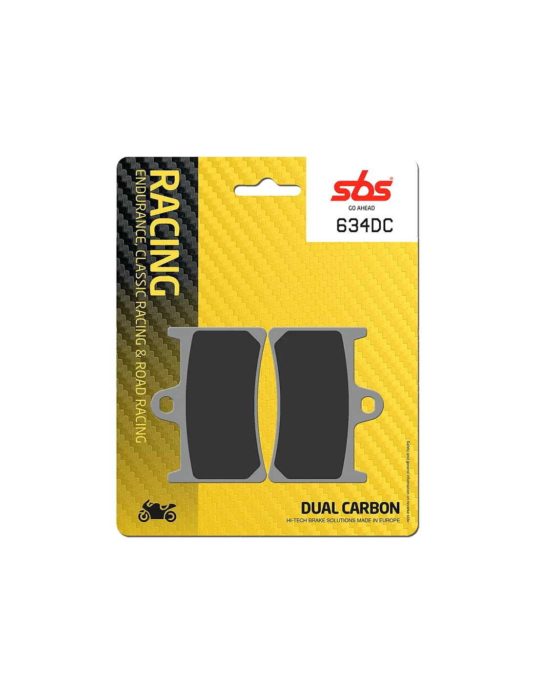 Las pastillas de freno SBS 841-DC DUAL CARBON tiene en su haber varios títulos mundiales y campeonatos nacionales. Las Pastillas de Freno Dual Carbón (DC) , con sus nuevos compuestos, nos transmiten una buena mordida inicial, con una mejora constaste en el rendimiento y una mayor durabilidad. Este compuesto de carbono ofrece su máximo rendimiento a altas temperaturas de trabajo, por eso son recomendadas para uso en circuito. Son las favoritas de los pilotos gracias a su gran desarrollo y a la experiencia obtenida en los mundiales de Superbike y en la nueva clase de Moto 2.