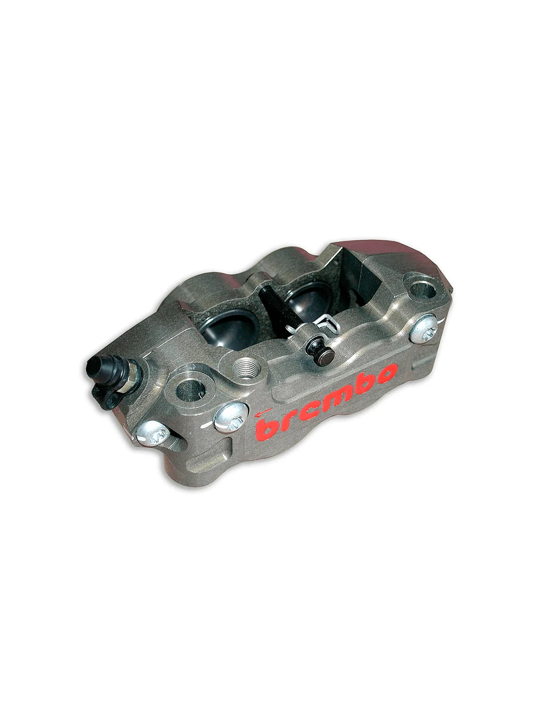 Pinza monobloque, estrictamente de competición, totalmente mecanizada en macizo gracias al uso de máquinas de control numérico. Estos calibradores permiten el más alto nivel de rendimiento que puede lograr un calibrador de motocicleta y son el resultado de cálculos de diseño precisos, así como del uso de las tecnologías más avanzadas en el procesamiento de metales. El cuerpo de la pinza alberga 4 pistones con diámetros diferenciados de 32 y 36 mm que actúan sobre cuatro pastillas, en lugar de dos.