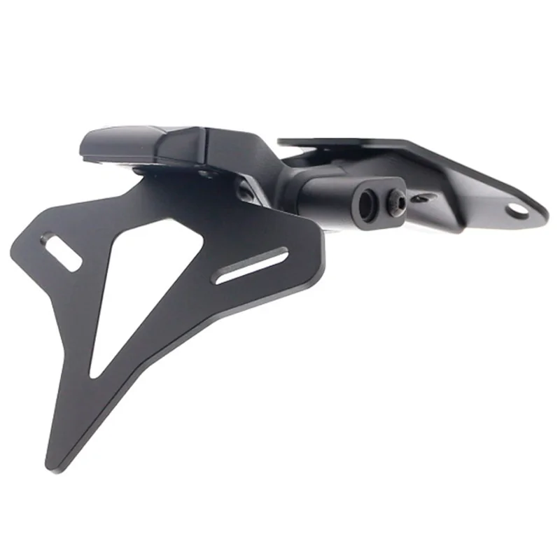 Porta matrículas de acero en color negro no homologado de Evotech Performance específica para su instalación en APRILIA