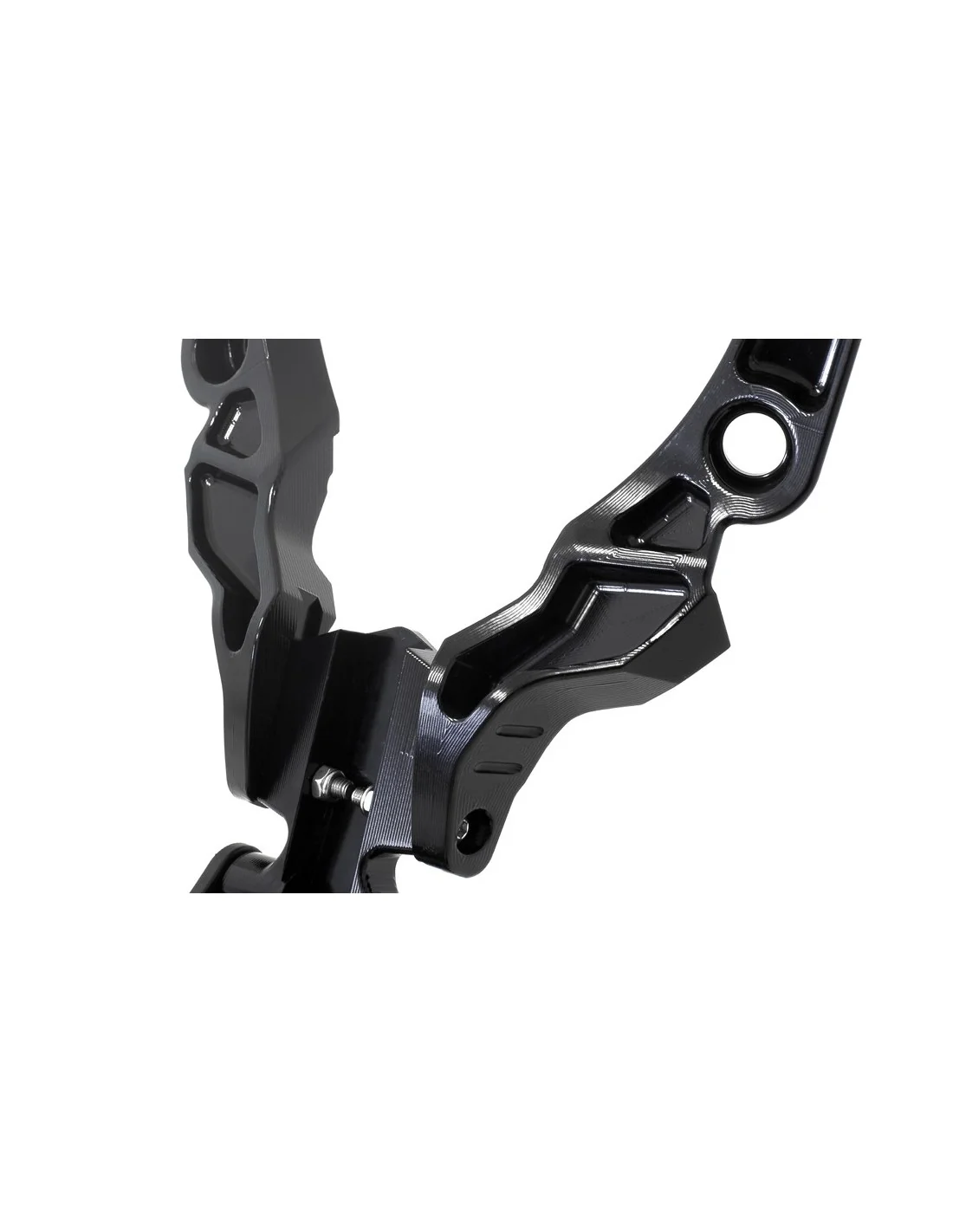 Extremadamente ligero y de revolucionario diseño: Aluminio aeronáutico, corte láser, anodizado negro, aluminio barnizado y porta placa específico para cada país.