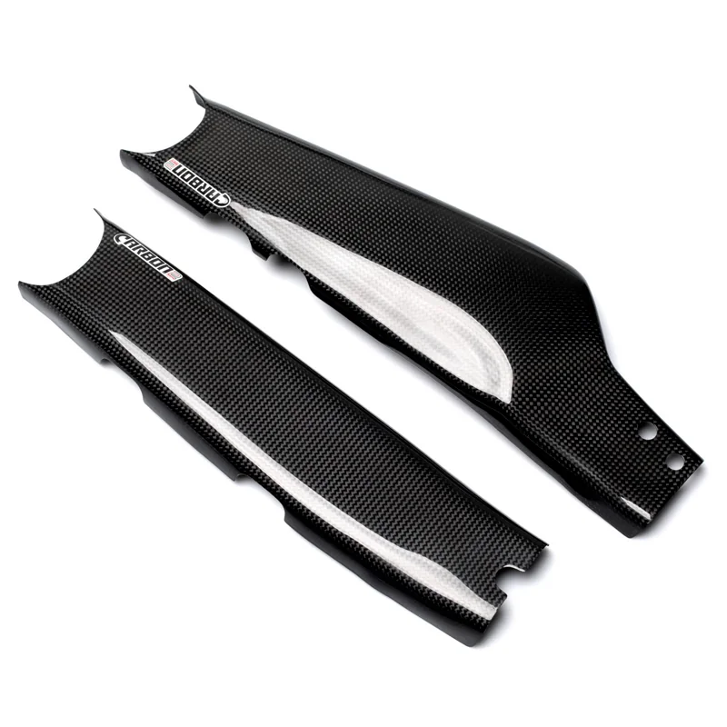 Las cubiertas del basculante protegen el acabado de fábrica y ayudan a conservar el valor de reventa de su moto. También son ideales para cubrir cualquier rasguño feo. El juego contiene protectores de basculante de fibra de carbono izquierda y derecha.