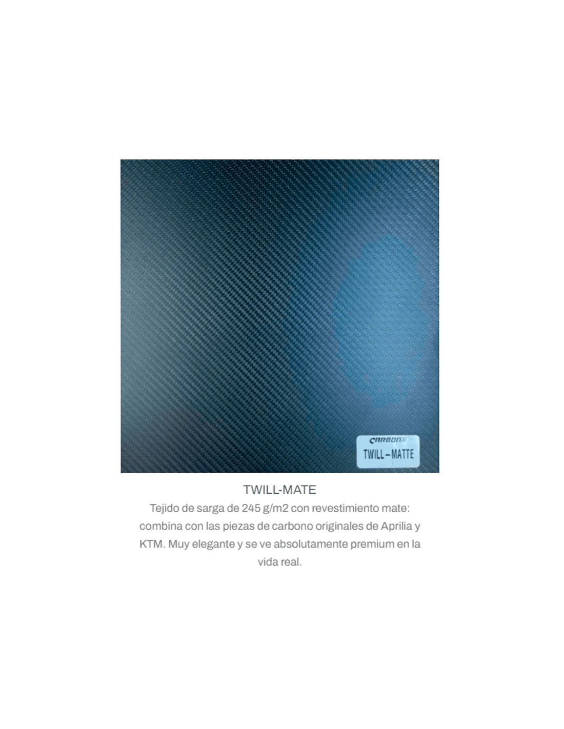 Están fabricados en un material con tejido llano de carbono, armadura de tela cruzada de carbono y con un acabado mate brillante satinado.