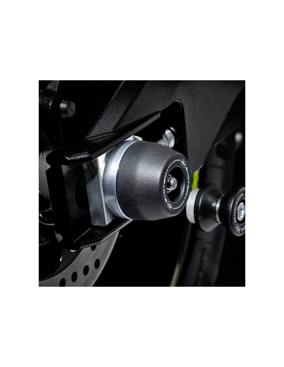Ubicadas a ambos lados del eje de la rueda trasera, se espera que las bobinas del eje trasero EP reciban el impacto inicial en un incidente. Los materiales duraderos y el diseño innovador pueden salvar el brazo oscilante y los portadores de la rueda dentada de daños costosos. El cabezal de la bobina de nailon y el núcleo de aluminio se fijan a través del eje trasero de la GSX-S1000Y mediante una varilla de eje de acero inoxidable de rosca enrollada. El nailon se mueve libremente con el impacto para reducir la tensión en la rueda y mejorar la durabilidad.