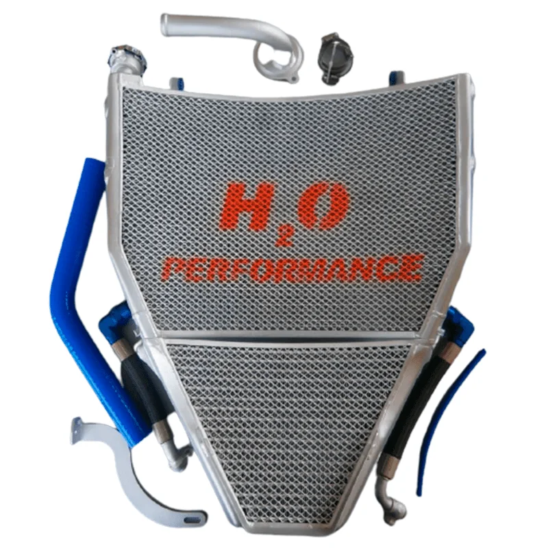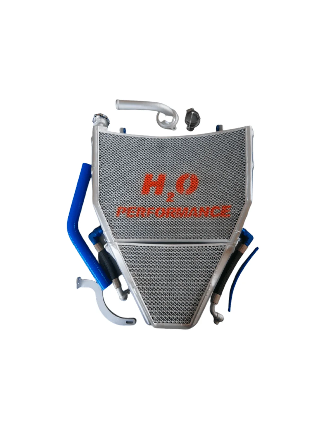 La marca H2O es sinónimo de calidad y profesionalidad, fabricante líder de radiadores de alto rendimiento y proveedor de vario equipos SBK. Reduce el peso de la moto. La masa radiante de agua adicional 22mm.