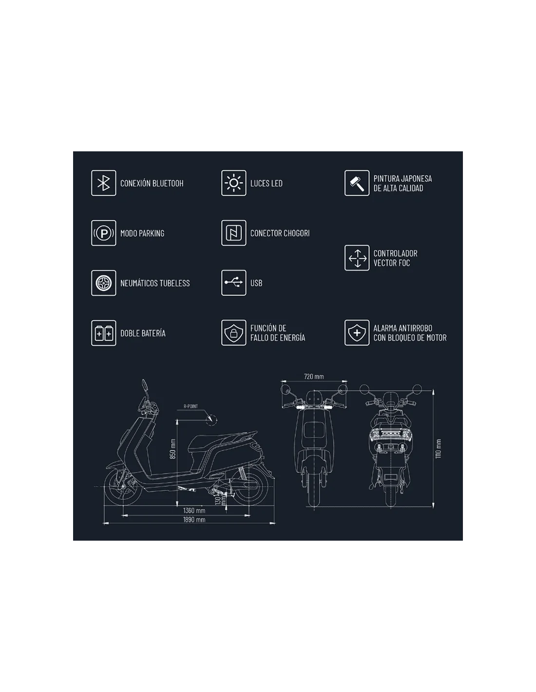 - Autonomía: 75 Km (con 1 batería) – 150 Km (con 2 baterías)