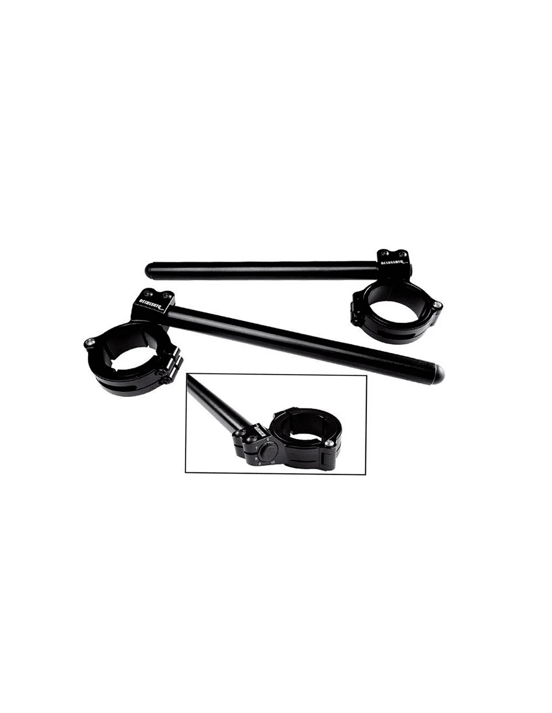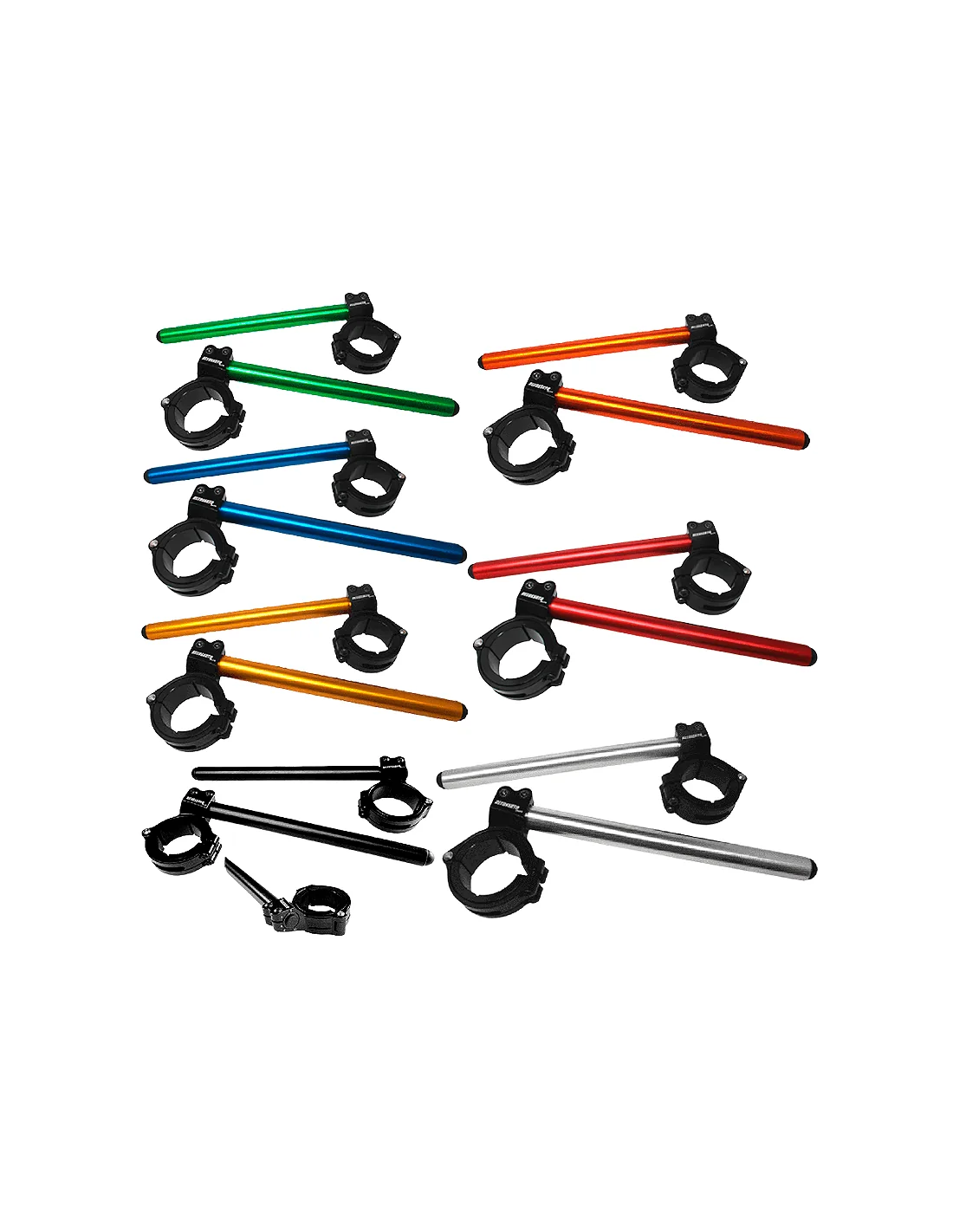 El sistema está diseñado para adaptar los semimanillares a horquillas de diferentes diámetros, simplemente sustituyendo el casquillo interno suministrado, eligiendo entre tamaños. Están fabricados en aluminio mecanizado.