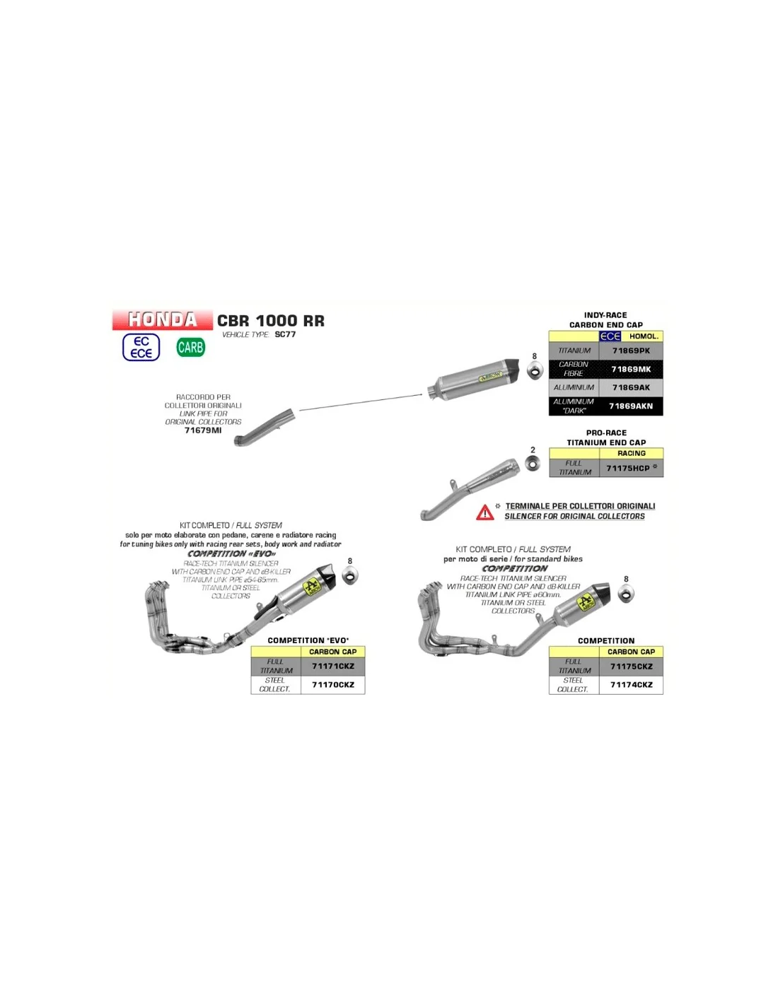 Los escapes Pro-Race están disponibles en una versión todo en titanio o en la nueva aleación especial de acero inoxidable (Nichrom), en versión Racing u homologada con DB-Killer. En 2017 se ha añadido el acabado Dark al silencioso. Debido a su diseño, las motos Honda CBR 1000 RR són compatibles con estos escapes.