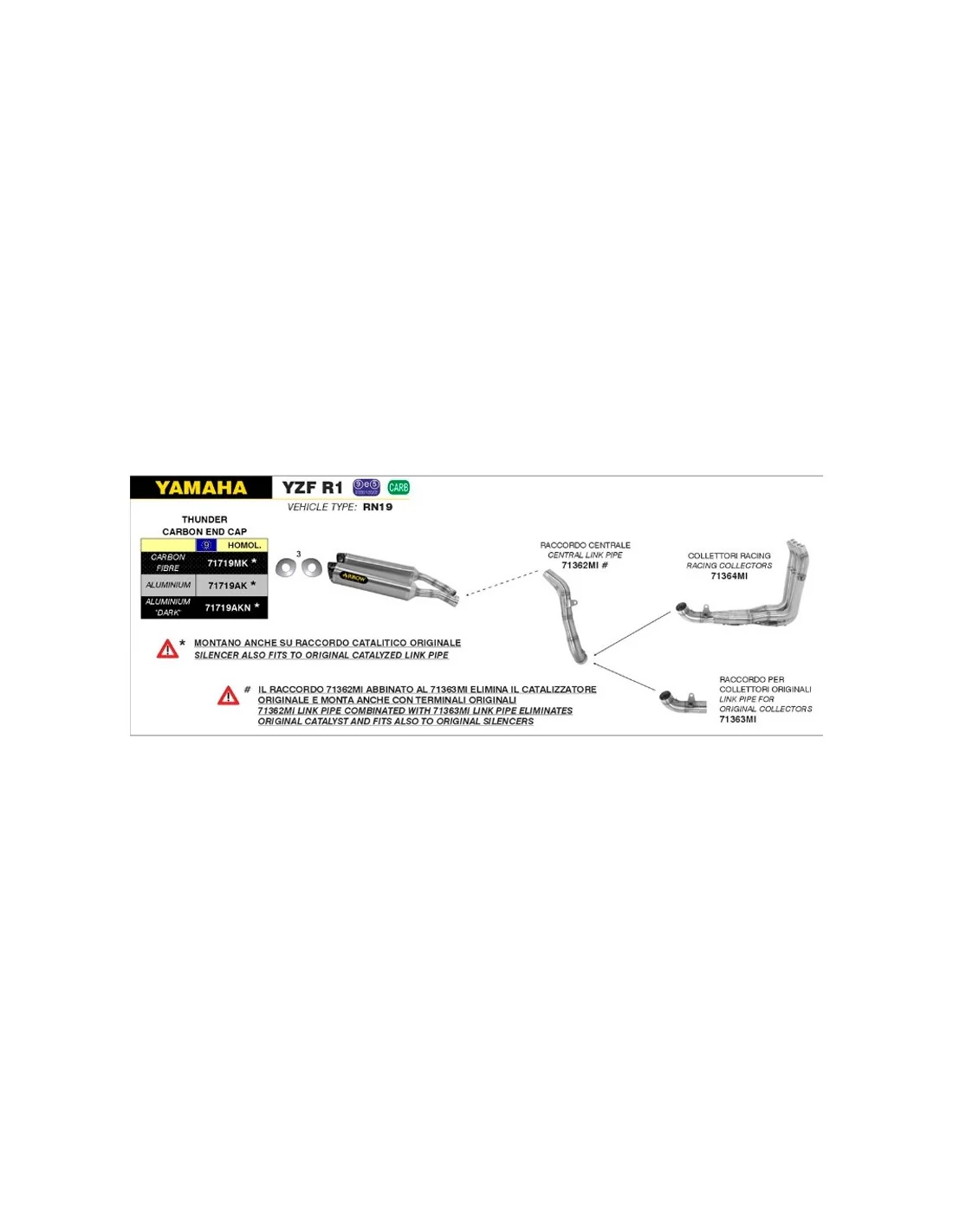 Arrow introduce en el sector de la Yamaha YZF R1 la línea Street Thunder, una mezcla de diseño y tecnología. La terminación posterior está disponible en acero inoxidable o en fibra de carbono, y el cuerpo en titanio, aluminio o carbono. Los silenciosos de la línea Street Thunder también están disponibles en la versión de homologados con DB-Killer extraíble.
