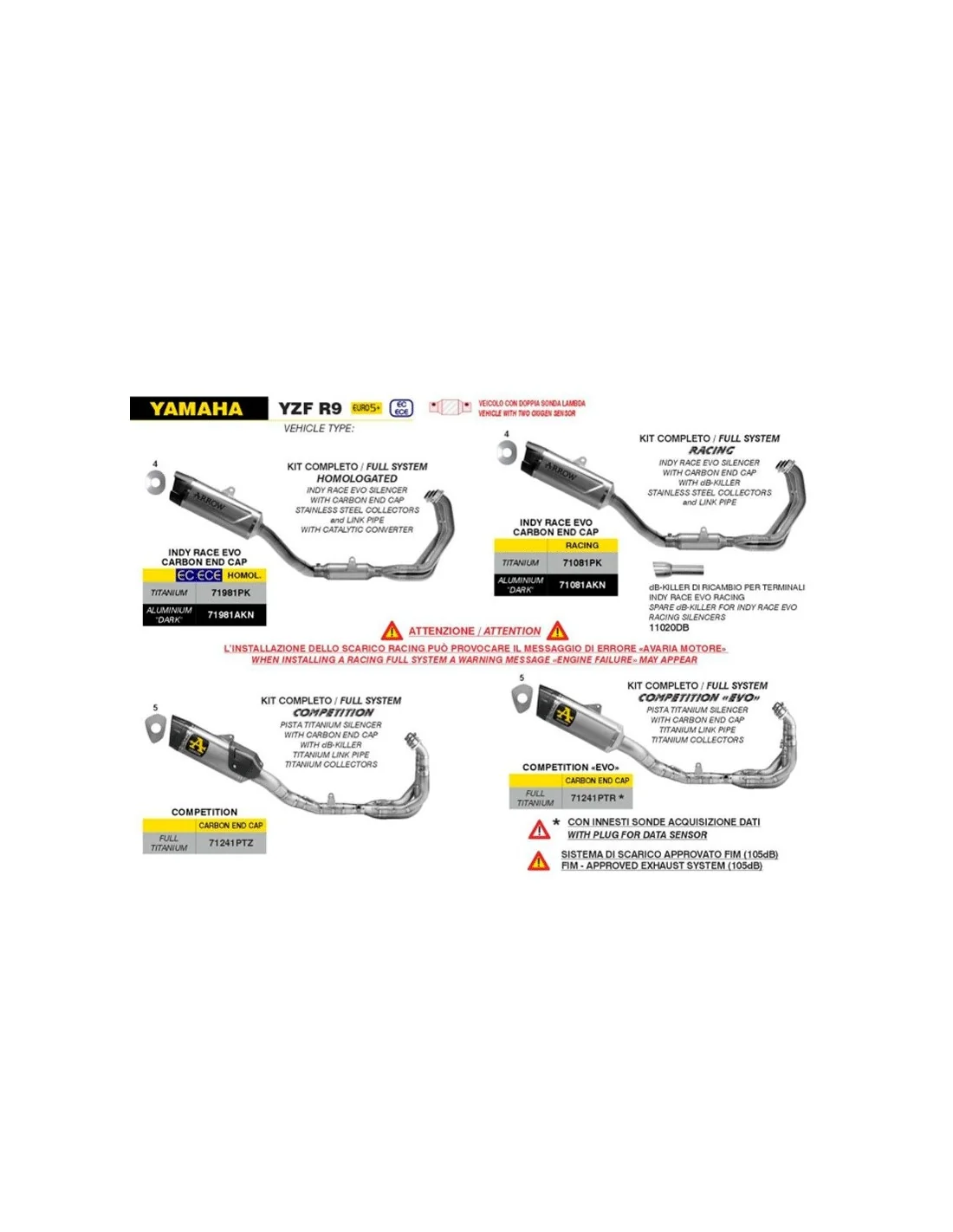 Escape completo racing con silencioso Indy Race EVO de titanio para YAMAHA YZF R9 2025 REF: 71081PK
