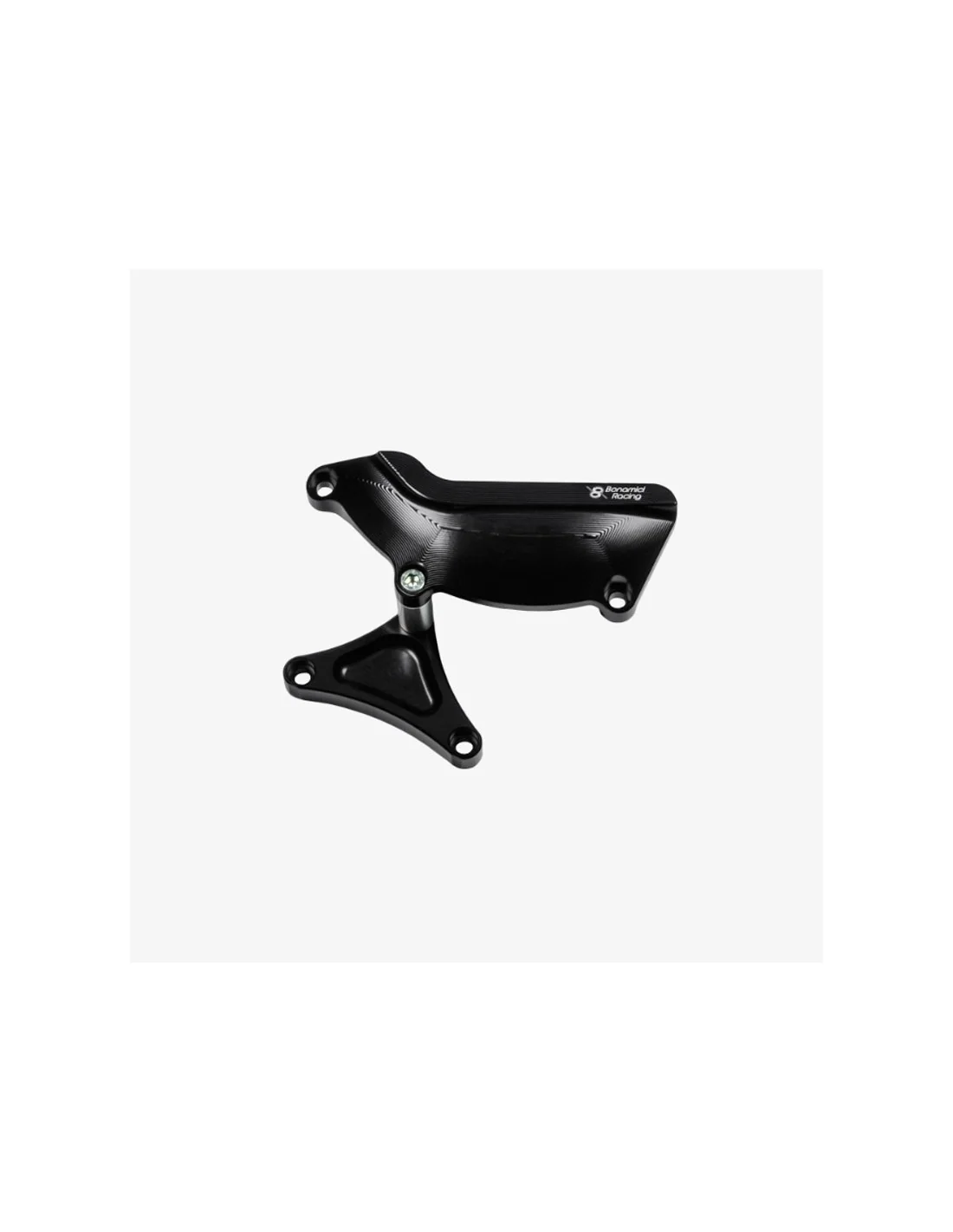 De la colaboración con los equipos que compiten en el campeonato mundial de superbikes, nacen las protecciones de cárter motor Bonamici Racing. En aleación de aluminio de alta resistencia, mecanizado en macizo con tecnología CNC y acabado con anodizado negro, el kit protege perfectamente las carcasas de la moto en caso de caída.
