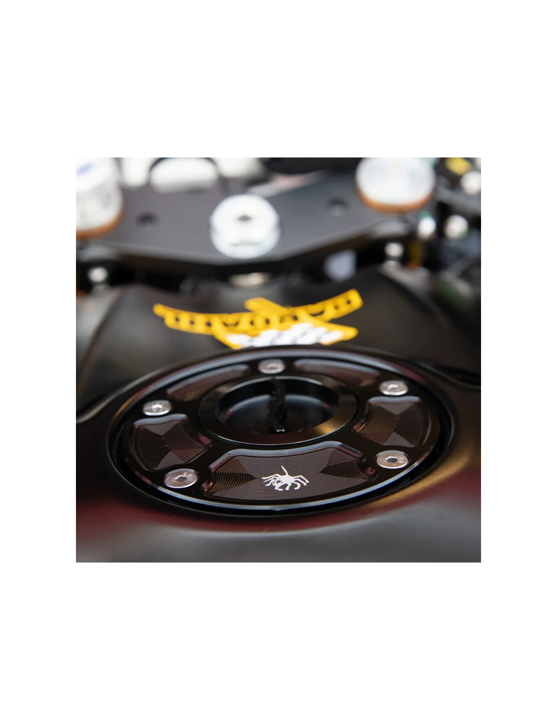Conjunto tapón depósito de cierre rápido en aluminio fresado.