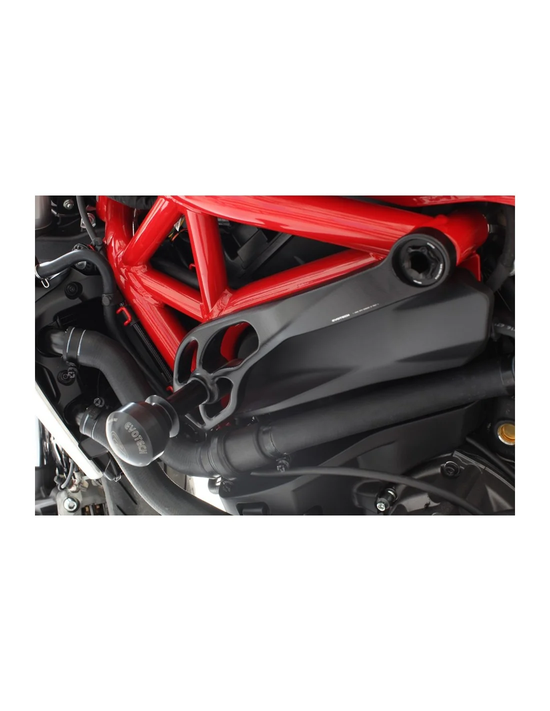Además, Evotech dispone de un accesorio opcional que representa la manera más cómoda y útil de sujetar tu moto en caso de transportarla habitualmente en remolque o furgoneta. Desmontando a mano el extremo de Delrin y montando nuestros enganches para cincha opcionales, dispondrás de un punto de anclaje accesible, resistente y súper útil (ver productos relacionados).